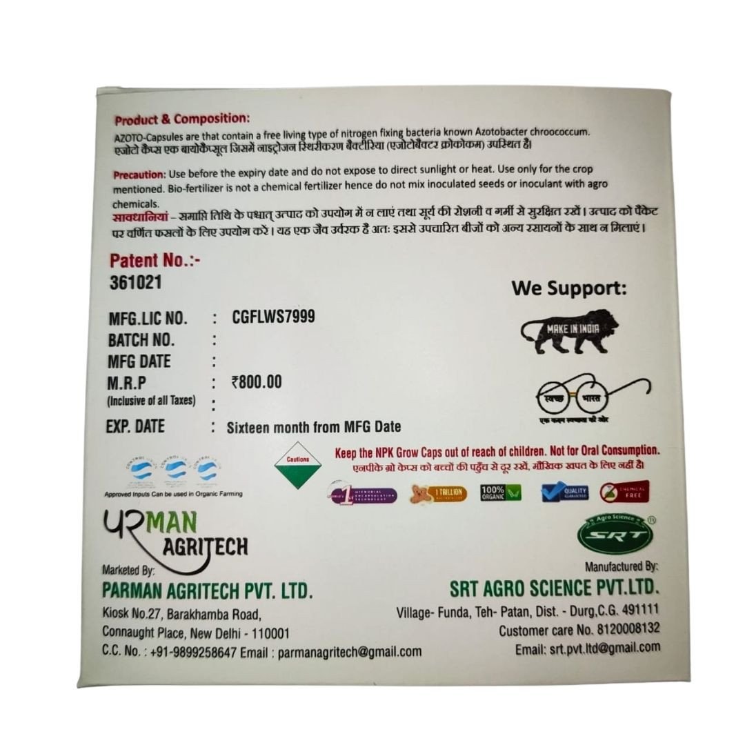 NPK STAAR CAPSULE ( BIO NPK ) - contain Azotobacter , Phosphate solubilizing & Potassium mobilizing bacteria.The capsules contains nitrogen fixing bacteria, P solubilizing bacteria and K solubilizing bacteria that enhance nutrient availability and promote plant growth.