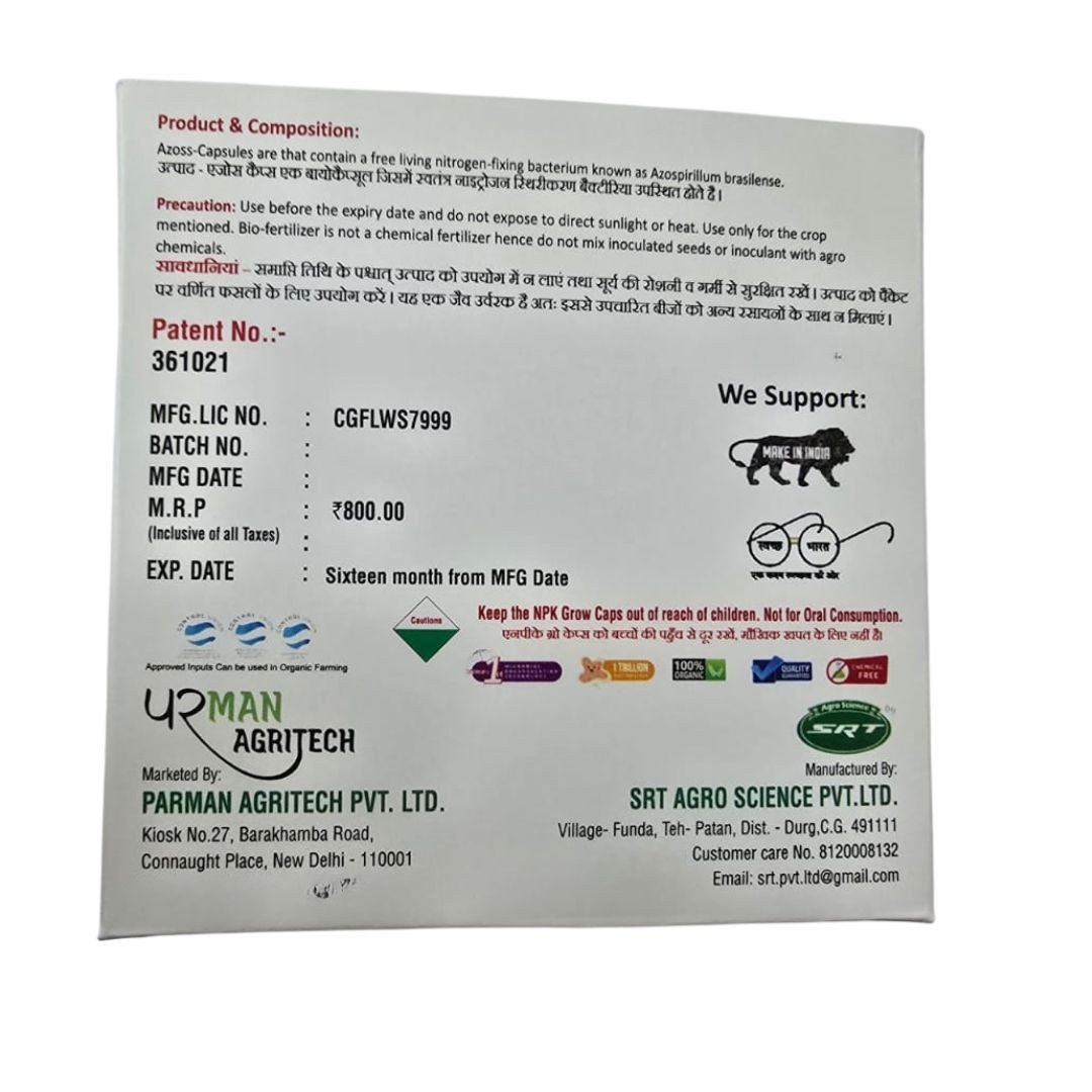 AZOSS STAAR CAPSULE ( BIO UREA ) - contains a free living nitrogen-fixing bacterium known as Azospirillum. It symbiotically associates with the rhizosphere of nonleguminous crop and fixes considerable amount of atmospheric nitrogen and makes it available to plant.