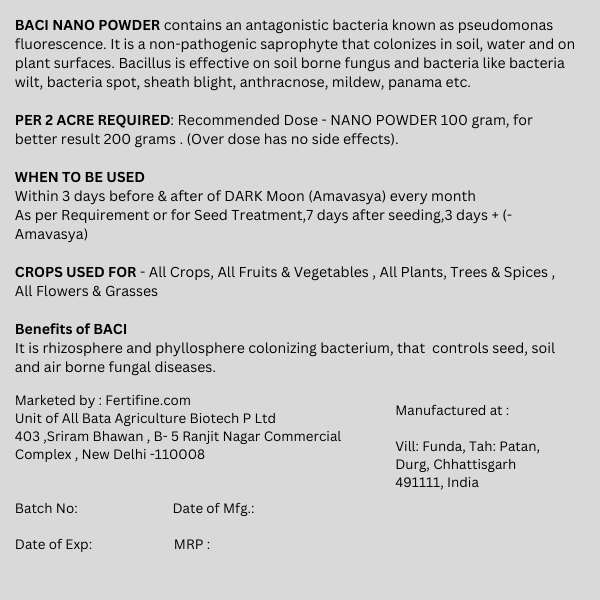 BACI NANO POWDER - Pseudomonas Fluorescens - 2X1010 cfu/gm