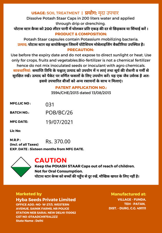 POTASH STAAR CAPSULES (BIO POTASH)-contain Potassium Mobilizing bacteria.
