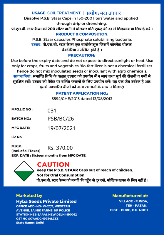 P.S.B. STAAR ( BIO DAP ) - capsules contain a phosphate solubilizing bacteria.